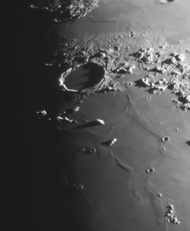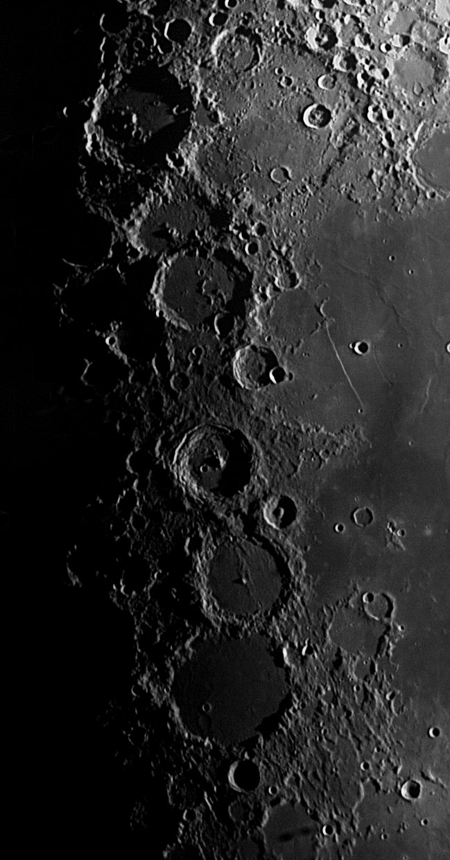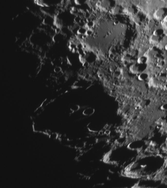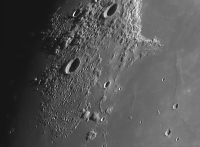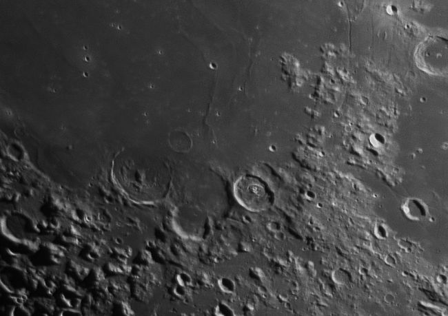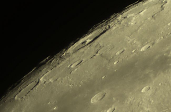 23.4.2021 - Nach einem weitgehend bedeckten Tag, klart es auf. Als ich dann fotografieren wollte, zogen wieder Wolken auf. Diesmal konnte ich die Pausenfunktion von Firecapture nutzen, um die Wolkenpausen auszublenden. Es funktioniert und mit der Montierungssteuerung kann ich die Formationen in der Bildmitte halten. Alle Aufnahmen sind mit dem 200er Newton und 2x Barlow entstanden. Diesmal ist nur der Grünauszug verwendet worden, da dieser die besten Ergebnisse liefert. Von Farbaufnahme am Mond komme ich langsam weg, die Farbwiedergabe auf verschiedenen Bildschirmen ist zu unterschiedlich.
