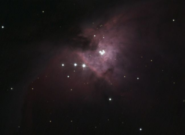 135mm Walimex überrascht mich dann doch sehr: 12.3.2021 - Es ist wieder eine Schlechtwetterfront im Anmarsch. Vorher mache ich noch mal die Sternwarte auf. Mars steht noch hoch am Himmel, aber mit 9“ sehr winzig. Beim Fokussieren gibt es keine „Fahne“ mehr, der Spiegel ist gut justiert. Anschließend gibt es noch einen kleinen Ausflug zum Orion Trapez. Das Seeing ist gruselig geworden und der Wind ist aufgefrischt. Das Bild wabert, manchmal ist die E-Komponente zu ahnen.
