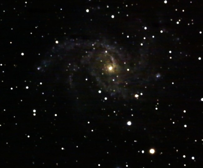 Ab 22:30 nehme ich noch NGC 2903 auf, mal schauen, ob der größere Abstand zum Mond was in Hinblick auf den Hintergrund bringt. Auch hier wieder mit UHC Filter. Das Objekt ist jedoch für die Aufnahme mit dem 135er nicht ideal. Durch den UHC Filter scheinen auch die Sterndurchmesser vergrößert. Vielleicht liegt das auch am fehlenden IR Sperrfilter.