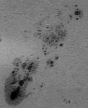 Sonne am 7.7.2013 mit 80/1200 mit 2-fach Konverter und Logitech Webcam (Autostakkert + Fitswork) |