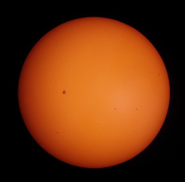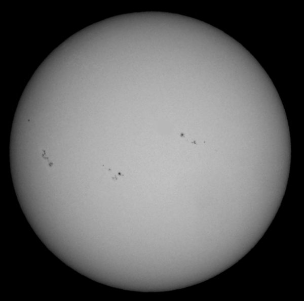 7.4.2013 - Die Sonne aufgenommen mit 50/540 und Kompaktkamera Sony DCS W1 hinter 25 mm Huygensokular mit Okularsonnenfilter. |
