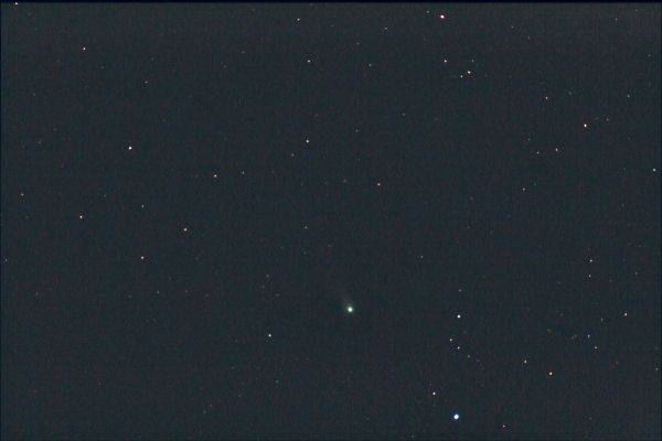 12.5.2013 - Testaufnahme mit Zoomobjektiv 75-300 mm an Canon EOS1000D mit maximaler Brennweite, voller Öffnung F=5,6, 1600 ASA und 30 Sekunden Belichtungszeit. Abgebildet ist der Komet Panstarrs |