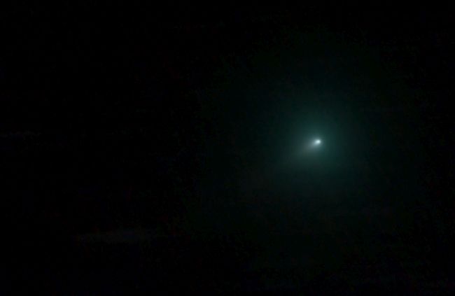 12.5.2013 - Testaufnahme mit Zoomobjektiv 75-300 mm an Canon EOS1000D mit maximaler Brennweite, voller Öffnung F=5,6, 1600 ASA und 30 Sekunden Belichtungszeit. Abgebildet ist der Komet Panstarrs |