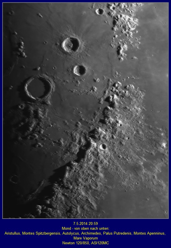 19.4.2013 - zwei Mondaufnahmen mit Dobson 203/1860 |