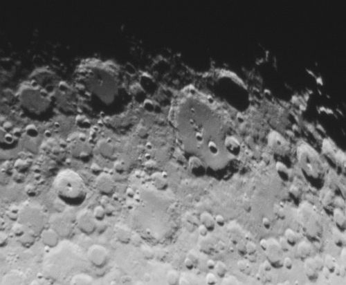 20.4.2013 - Clavius mit der Logitech Webcam am Newton 203/1860, Okularprojektion mit 16 mm Okular |